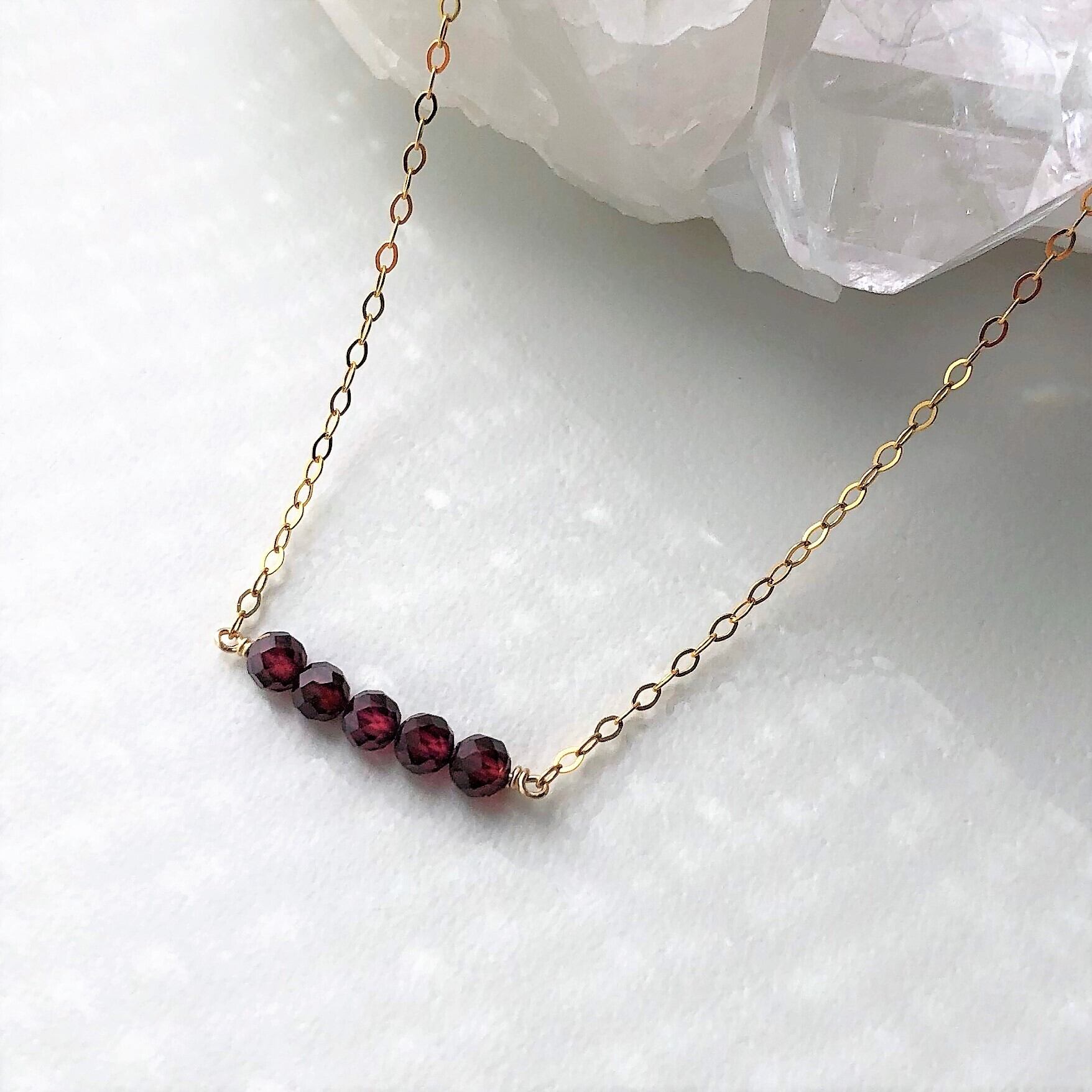 14KGF モザンビーク産ガーネット バー ネックレス