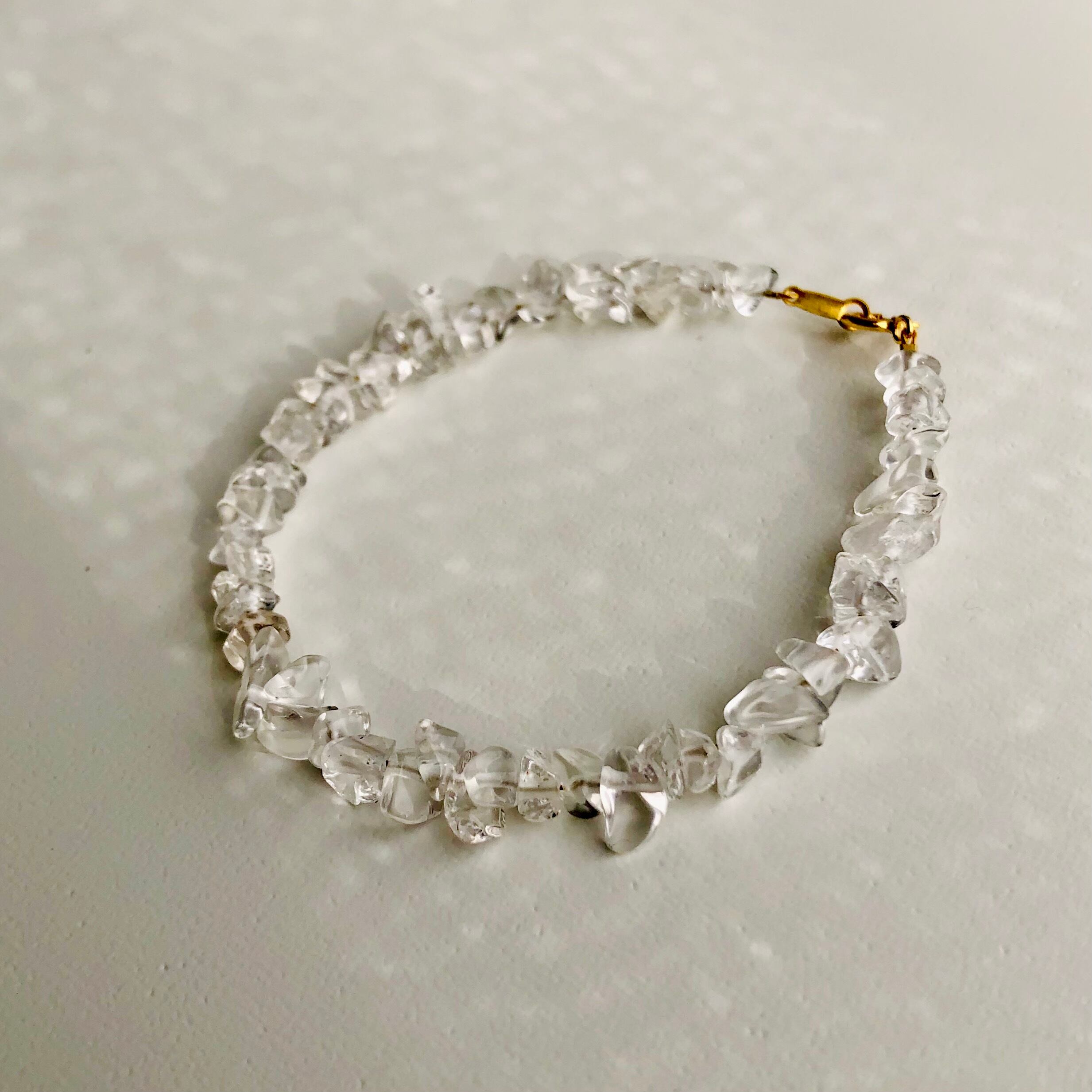 ラフカットの水晶がキラキラと輝くブレスレットです。
